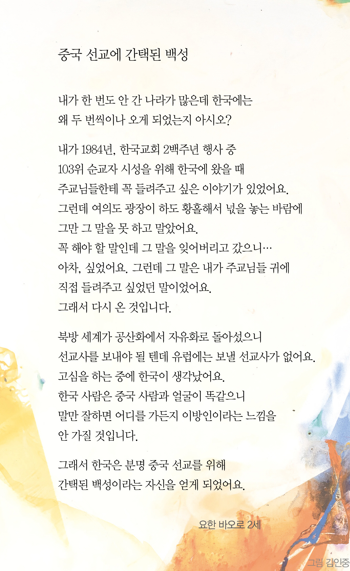 아차, 싶었어요. 그런데 그 말은 내가 주교님들 귀에