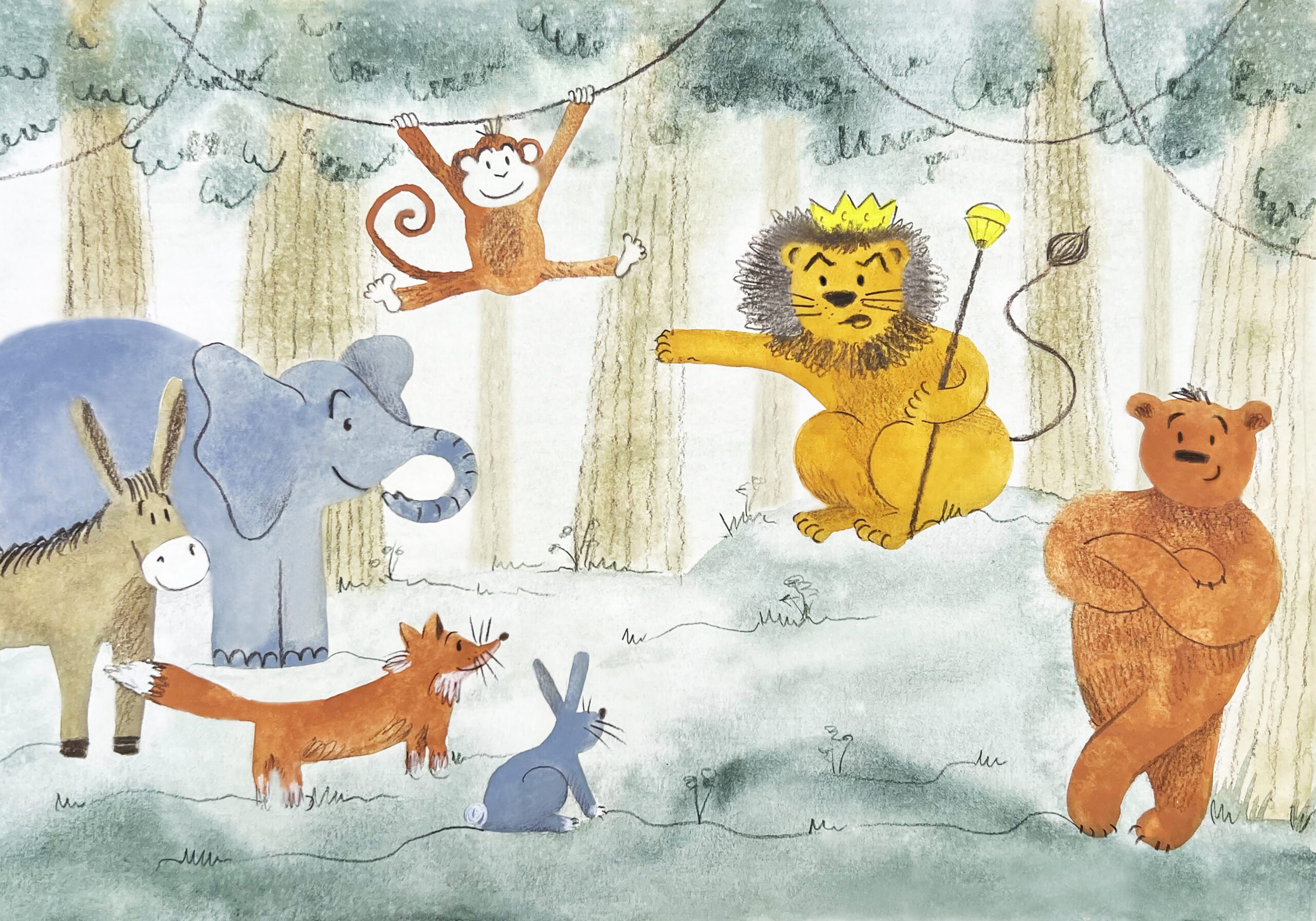전쟁이 났습니다. 숲속의 짐승들은 힘을 모으기 위해 한자리에 모였지요.