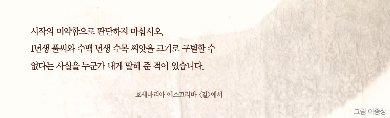 1년생 풀씨와 수백 년생 수목 씨앗을 크기로 구별할 수